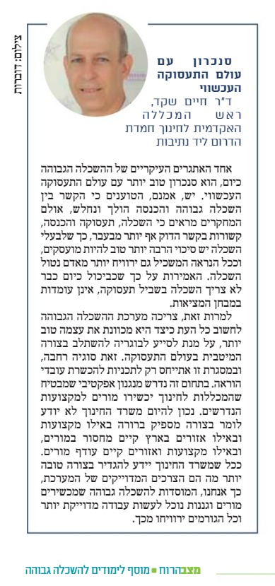 לכתבה בעלון גילוי דעתד"ר חיים שקד, ראש מכללת חמדת הדרום מודאג מאוד מפערי השכר בין מורים ותיקים וחדשים ומציע מודל פשוט לפתרון הבעיה.